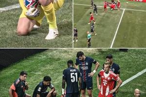 体育资讯07月06日讯 拜仁vs巴黎上半场尾声,穆西亚拉遭遇脚踝变形重伤。中场时记者François Plateau发文。